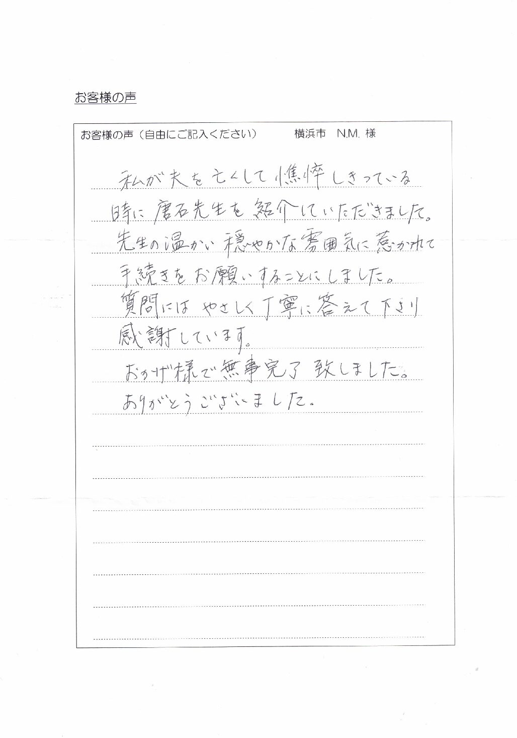 からいし行政書士事務所に寄せられたお客様の声をご紹介します。